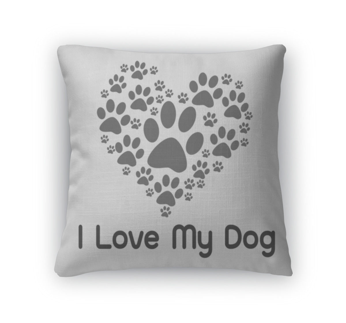 Throw Pillow, I Love Dog Symbol And Cute Dog