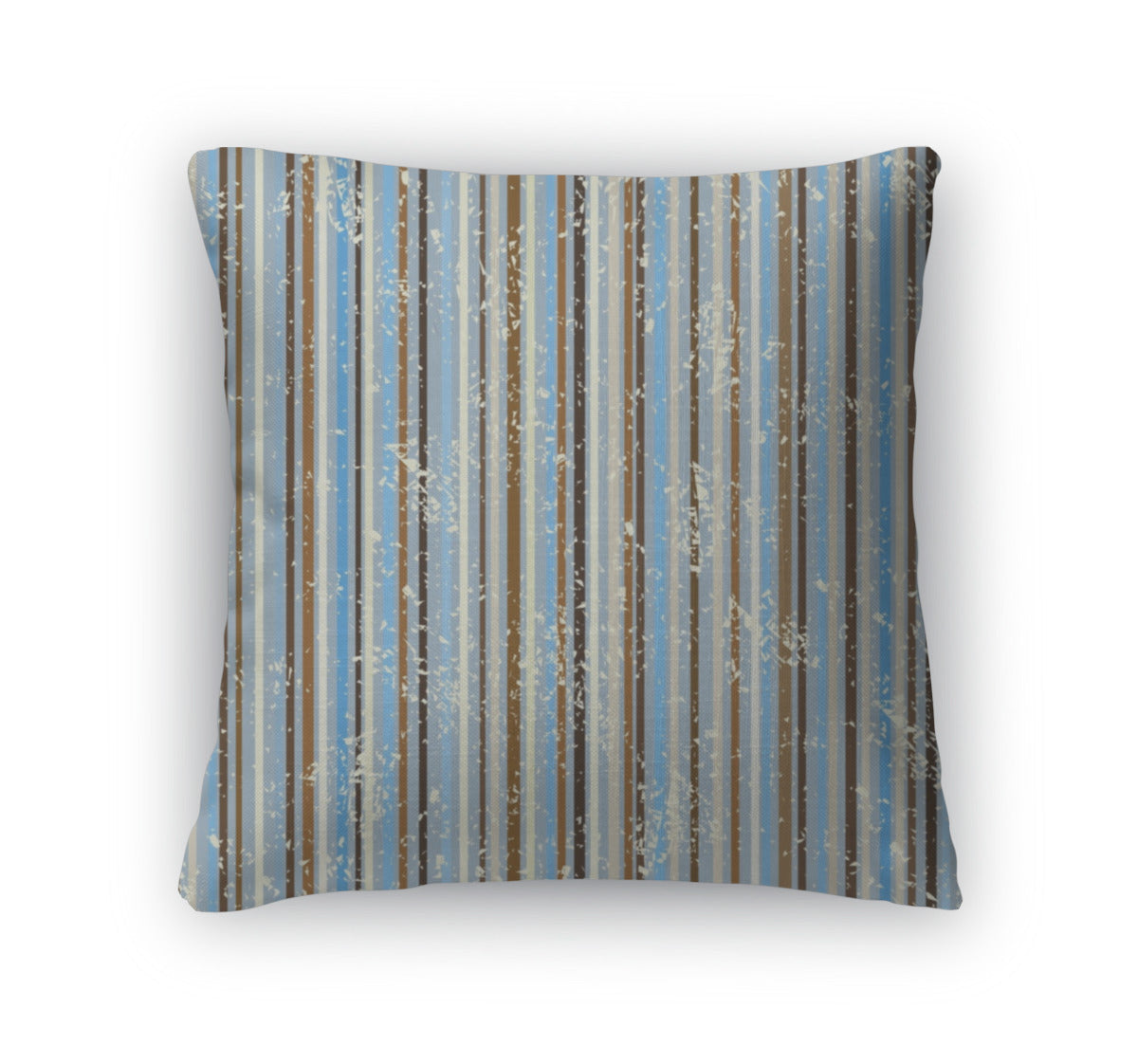 Throw Pillow, Striped Shabby Pattern Brown And Blue