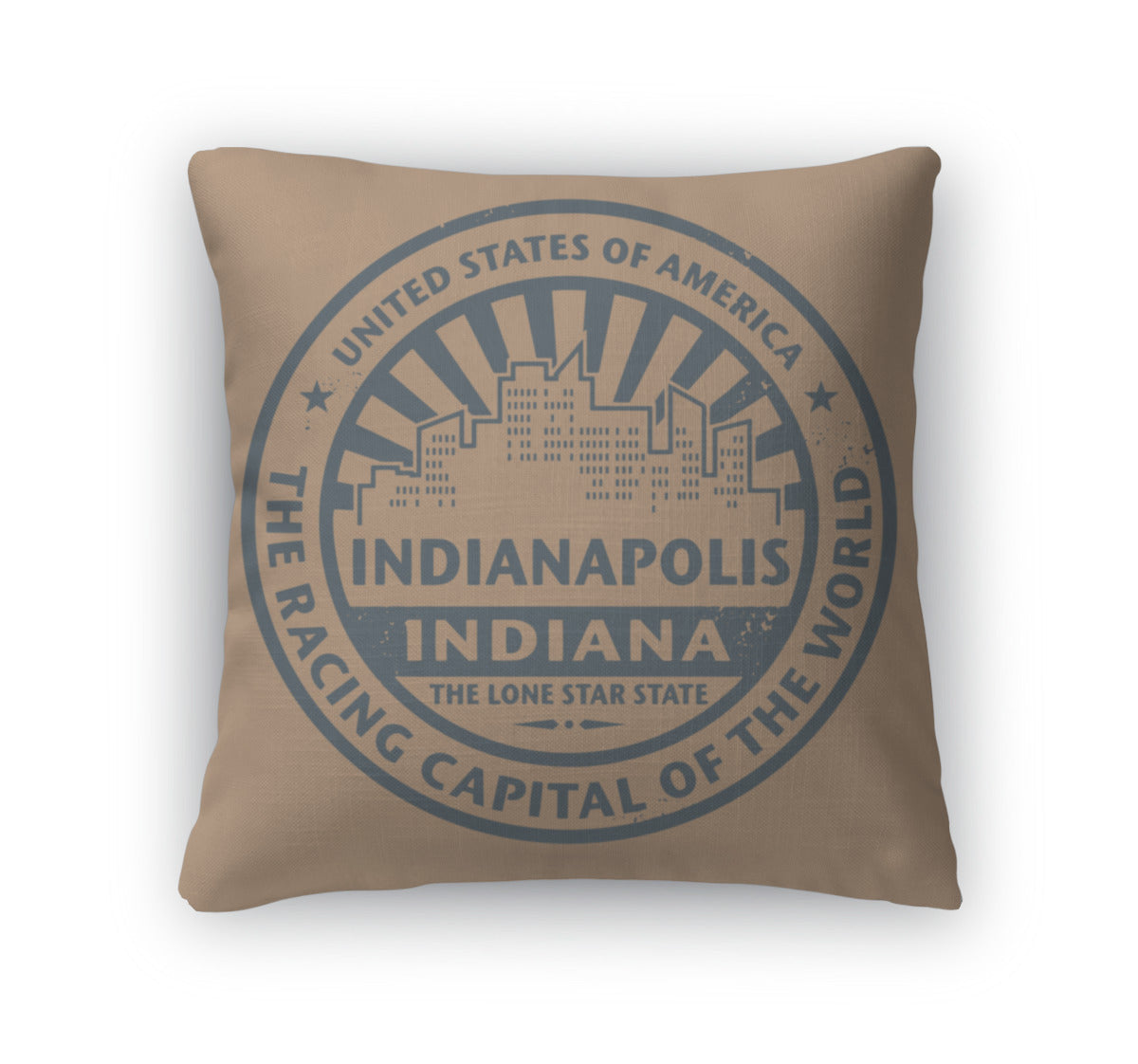 Throw Pillow, Grunge Rubber Stamp With Name Of Indianapolis Indiana