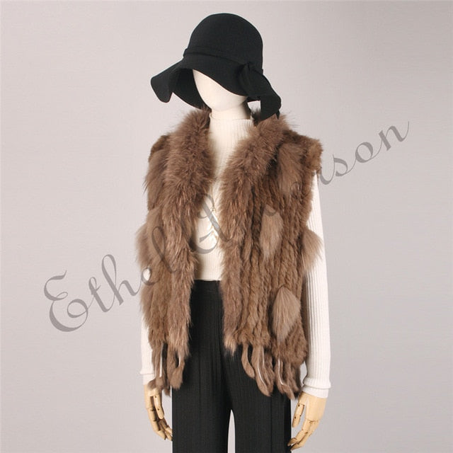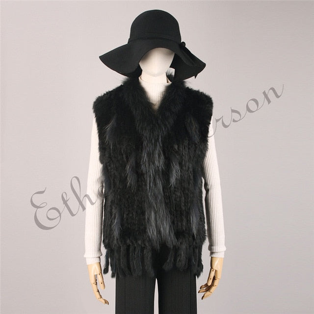 Knitted fur beanie vest women colors: White, Grey, Navy blue,black fur jackets