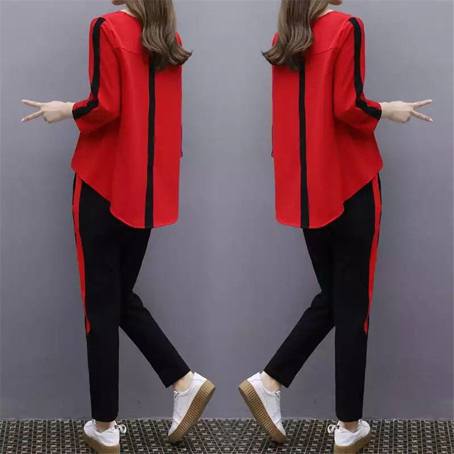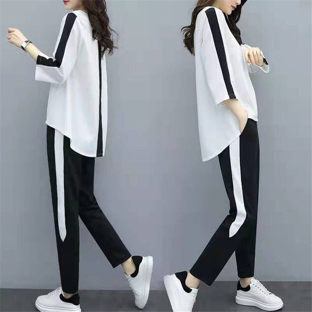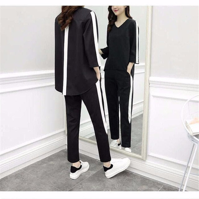 Plus Size Large L- 4XL Outfit Tracksuit Sportswear Co-ord Set for Women 2019 Top and Pants Ruffles Striped Clothing