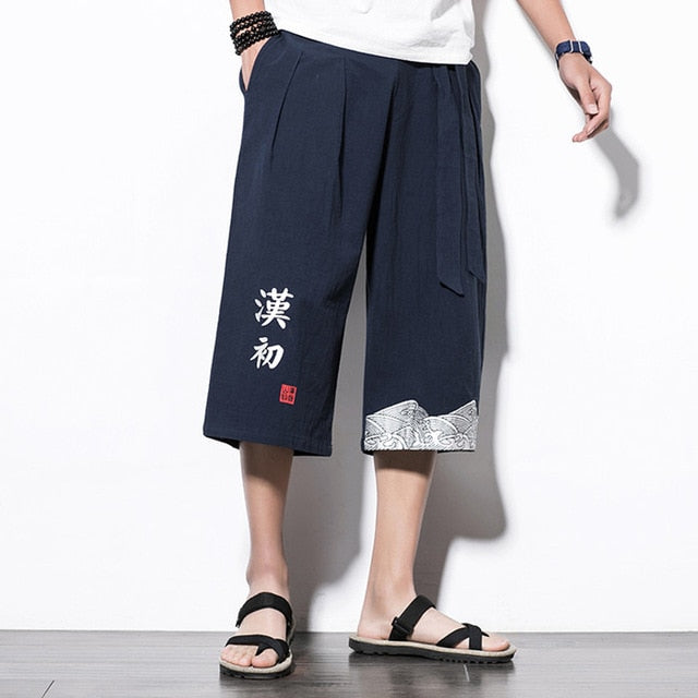 SHANBAO brand original Chinese style embroidery cotton fashion loose harem pants 2019 summer men's straight wide leg pants K1617