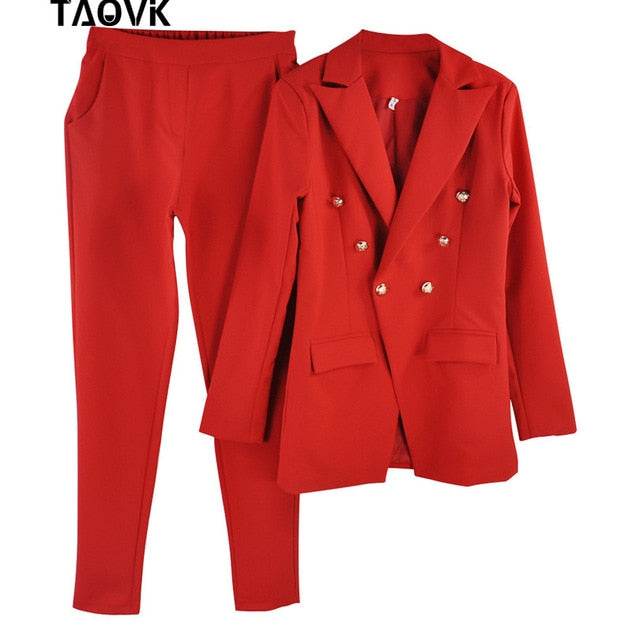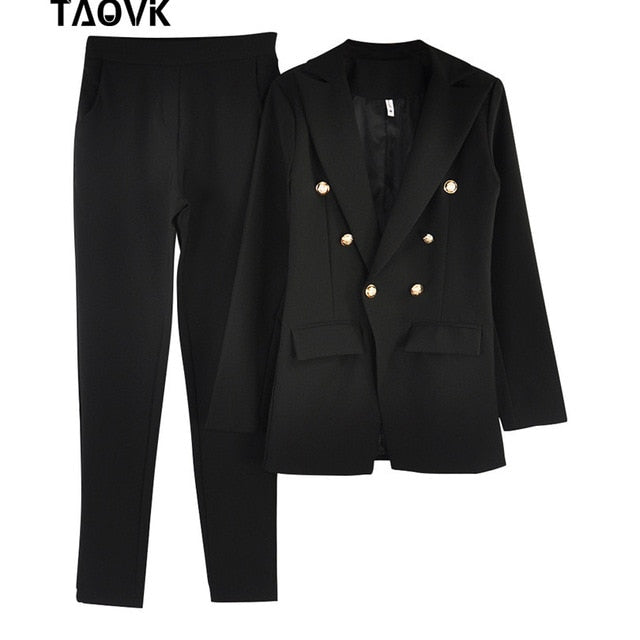 TAOVK OL Pant Suits Double-breasted Turn-down Collar Blazer top+Pants 2 piece outfits for women Feminine clothes pantsuit 2019