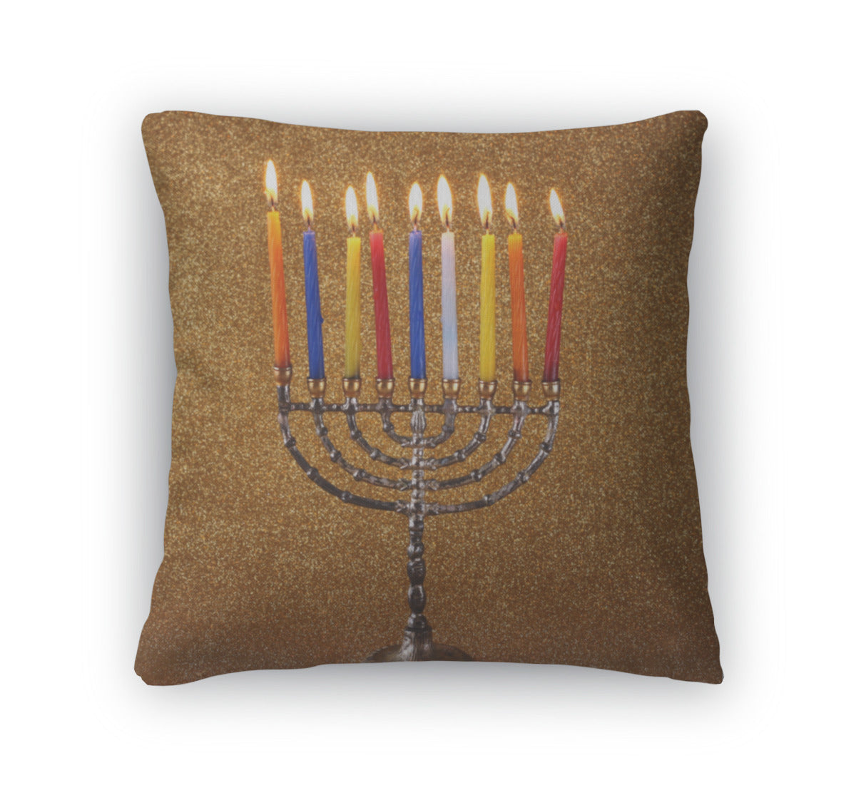 Throw Pillow, Menorah With Candels And Glitter Lights Hanukkah Concept