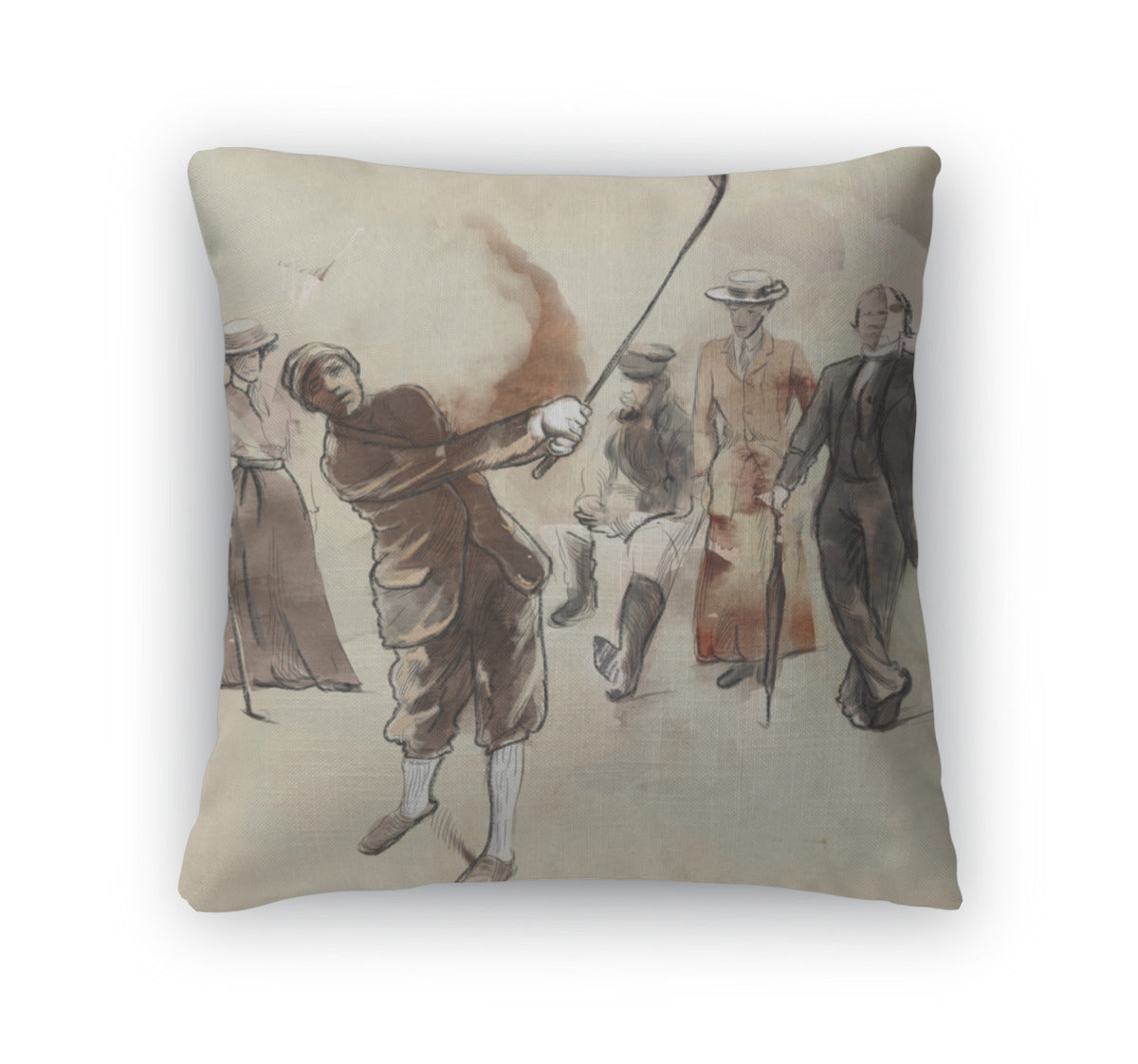 Throw Pillow, Golf Player An Hand Drawn And Painted Illustration