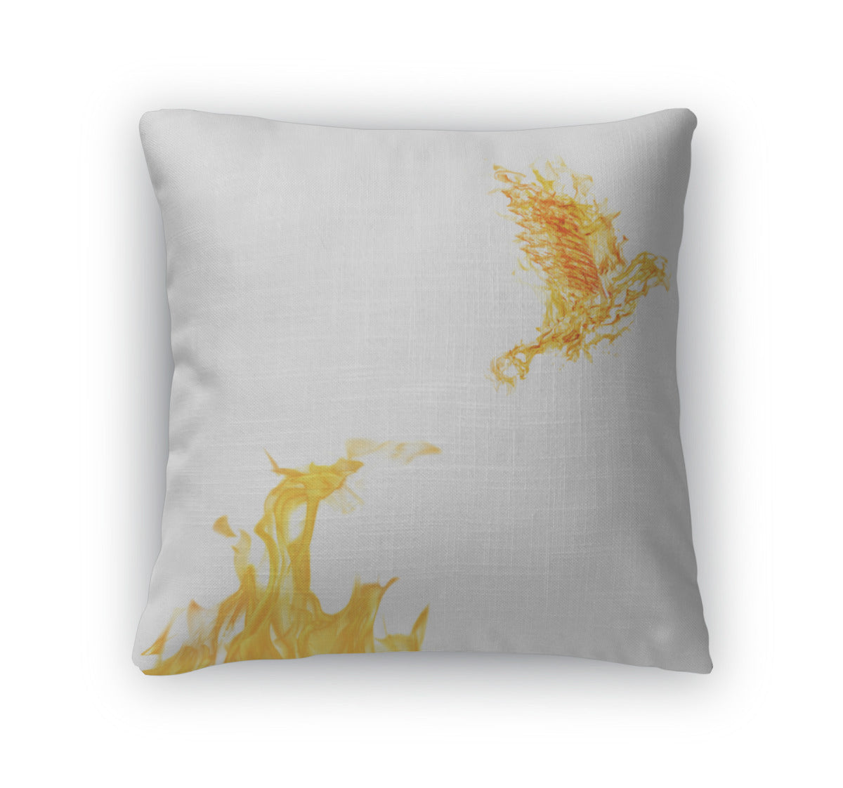 Throw Pillow, Flame Dove Flying From Yellow Fire Isolated On White